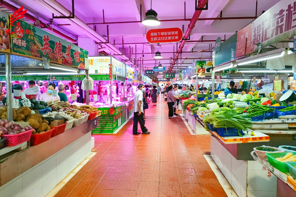 “有没给我留条靓排骨。”“莲藕今早新到的,要不要买点试试。”干净整洁的肉菜档前,前来买菜的市民熟稔地与档主交流着。8月15日上午9时,珠江时报记者来到了南海的“网红”农贸市场——位于桂城街道的鸿堤肉菜市场。一大早,鸿堤市场就迎来了属于街市的最美烟火气。