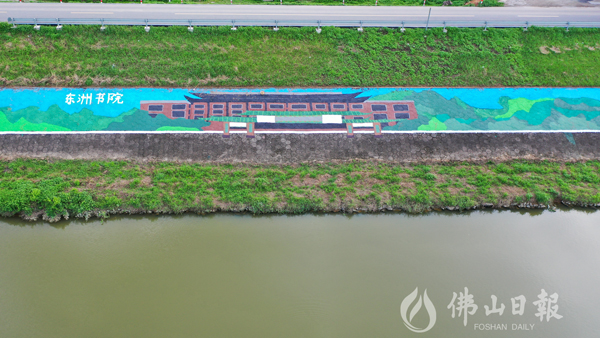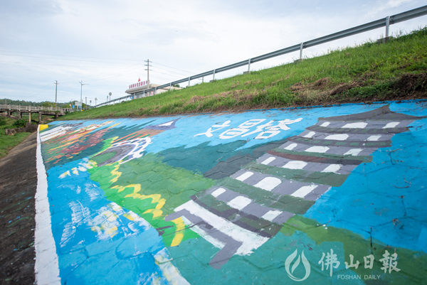 一幅色彩斑斓的江堤墙绘在高明明城镇明阳村的沧江河畔徐徐展开。佛山日报记者洪海摄