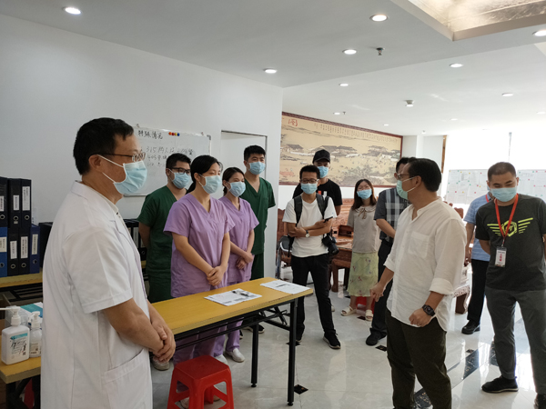 黄智斌代表检查组向驻扎在酒店的防疫工作者表示慰问和赞许,同时表示目前防疫形势非常严峻,希望大家要更加提高认识,鼓足精气神,确保工作落实到位。