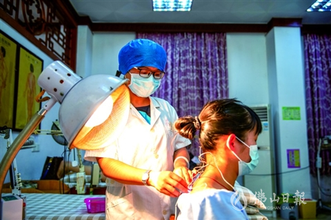 高明区中医院康复科内,医生为患者针灸。/图片均为佛山日报记者洪海摄