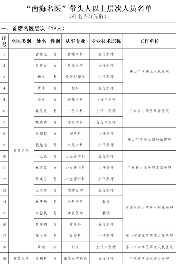 8月19日,佛山市南海区名医评选工作领导小组办公室正式公布了第二届“南海名医”评选结果,全区共有199人获评2021年带头人及以上层次“南海名医”。