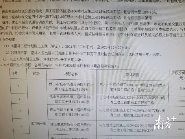 另外其他招标文件中提到的土建监理,则分别涉及佛山地铁4号线一期工程所涉及的禅城区和南海区施工标段。另外佛山地铁4号线一期工程段场监理则包含了大塱山停车场、平胜车辆段。