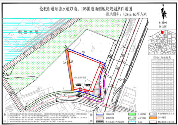 据了解,地块原属于伦教•顺德⽔道村改⽣态公园侧地块项目,此次单独拆分了住宅部分进行出让。