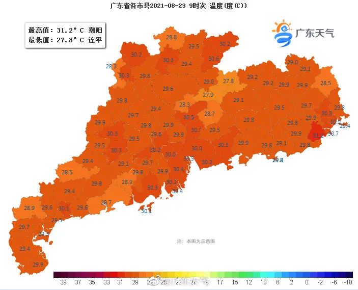 @广东天气 ,23日,粤东和珠三角南部晴到多云,有分散雷阵雨局部大雨,其余市县晴到多云,局部(雷)阵雨。最高气温:南部沿海市县31℃~34℃,其余市县35℃~36℃。又是火辣辣的一天哟!
