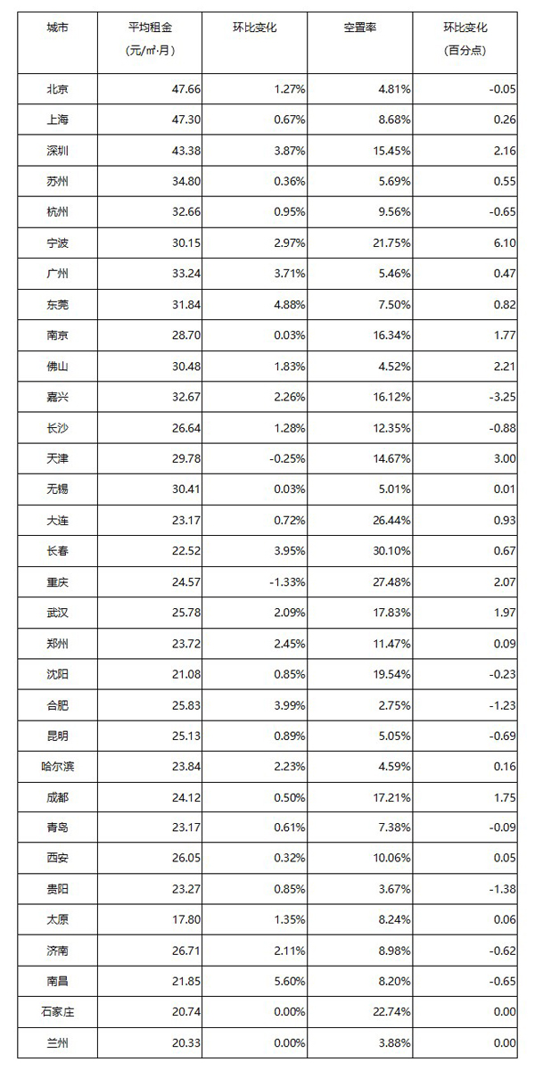全国32个城市仓库空置率波动最大的城市是宁波,空置率环比上升6.10个百分点,主要因鄞州区、镇海区等区域新增供应面积超23万㎡,阶段性供应充足,使得当地空置率有所上升。