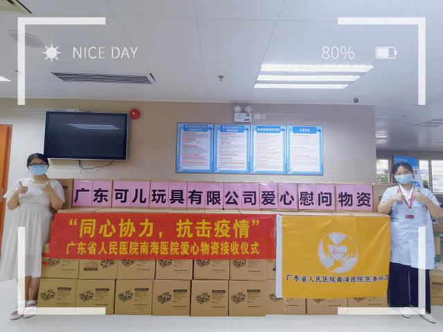 日前,广佛新冠疫情防控形势复杂,作为佛山企业的一份子,可儿玩具时刻关注社会时事,第一时间向佛山抗疫医院捐赠一批爱心物资,以实际行动向奋战在抗疫一线的医护工作者致敬。