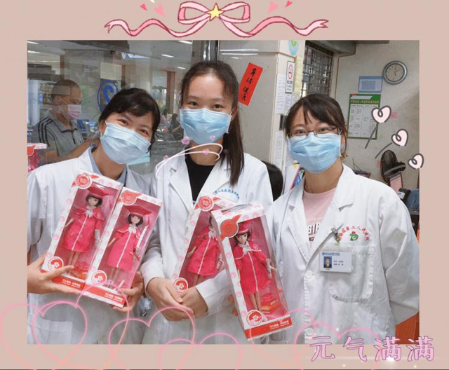 在广东新冠疫情防控的关键时期,医护工作人员不辞辛苦,奋战在防控一线,夜以继日地进行核酸检测和疫情防控工作。可儿由衷地向他们表达敬意,同时也向广东省人民医院南海医院、南海区桂城医院、南海区人民医院、南海区妇幼保健院分别送去一批可儿娃娃,希望能给医护人员带去心灵上的温暖以及给他们的孩子提供情感上的陪伴,送去的中国娃娃“小状元”饱含着可儿的小小心意,寓意孩子们也能像父母一样,做个出色的孩子。