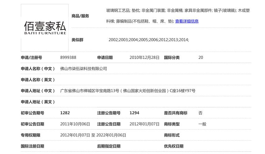家具商标20类2个及互联网商城35类商标