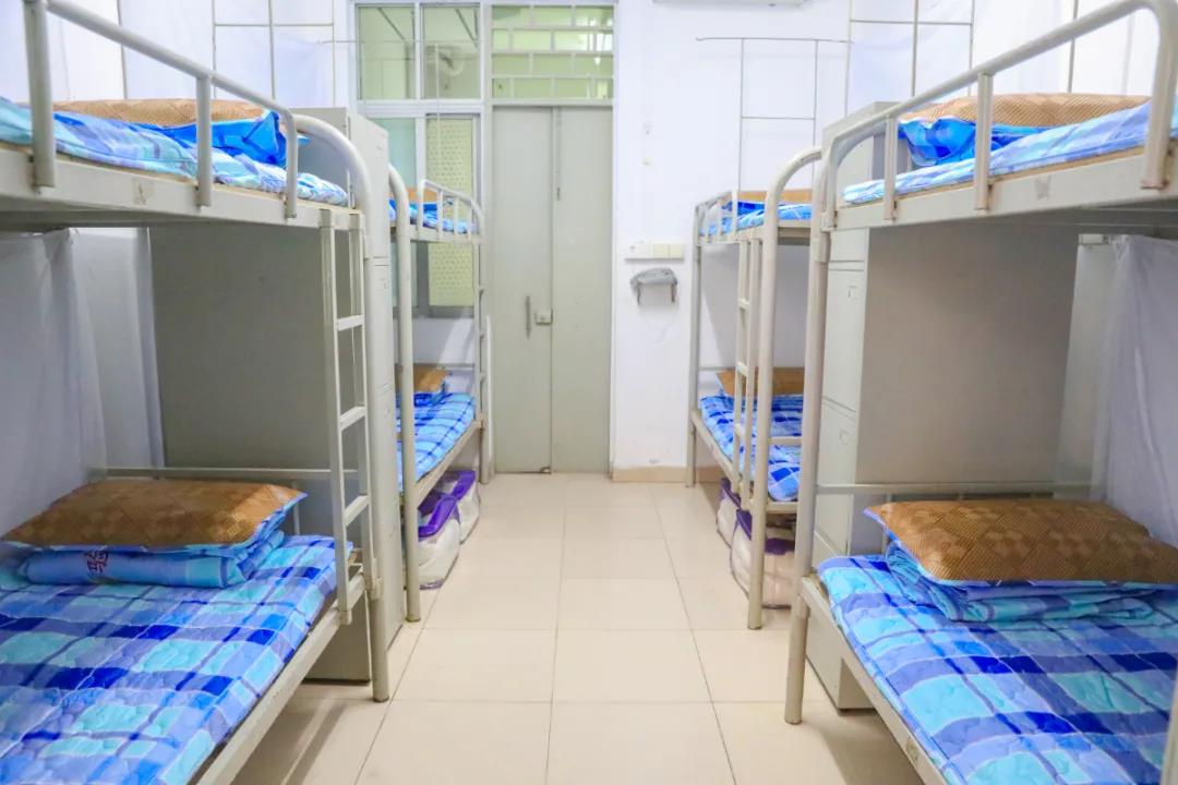 生活老师在为学生铺好床铺、挂好蚊帐后,将在宿舍内连续两天利用紫外线消毒灯进行消毒,确保学生返校后安全使用。床铺等物品周末可带回家清洗。