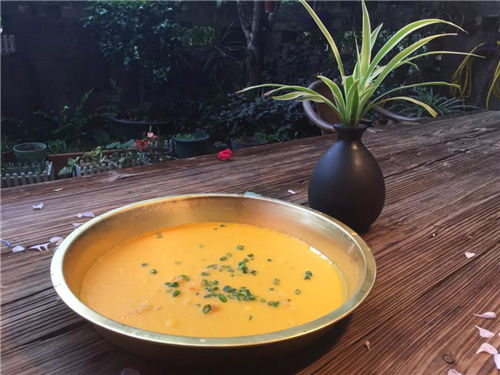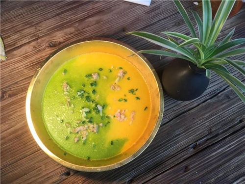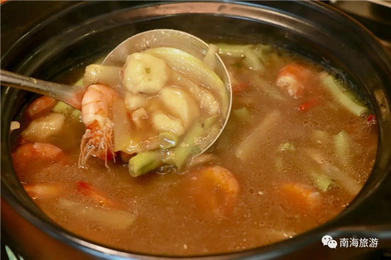 媲美泰国冬阴功汤→将夹杂着炒黄豆的面粉团、鲜虾、豆角、节瓜和新鲜辣椒煮成一锅,这道可以50后传统辣椒汤就诞生了。