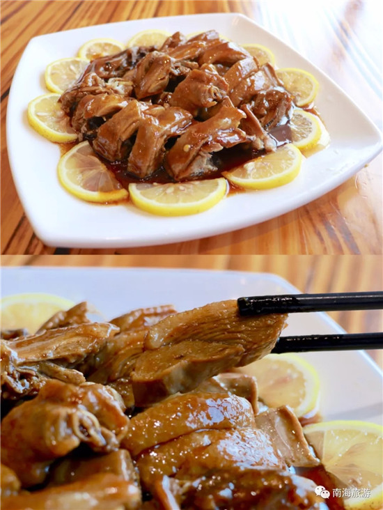 每一口都肉汁飞溅→呷醋鹅选用自家吃五谷杂粮长大的瘦身草鹅,用香米醋烹调出的浓厚酱汁煮至鹅肉入味。让客人咬的每一口都有肉汁“吱”出来,搭配清新抗氧化的柠檬,满满夏日风情。