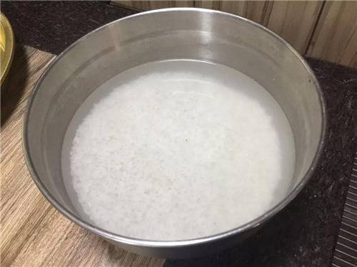 首先,要把粘米浸泡一晚上,把米和水放进料理机里打成米浆。需要注意的是,不要一次过把米和水直接放料理机打浆,而是先把湿米放进去打30秒后再继续加水打浆。这样做的好处是可以掌握米浆的稀稠程度,以免影响口感。