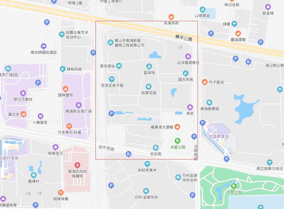 南海颐景园位于桂城东华翠南路6号,地块北临佛平路,南靠桂平路,西侧为怡翠花园,东面临平洲。佛平路是贯穿佛山市区、平洲、广州等地的交通主干道,更连接即将开通的一环干线,届时可在30分钟内到达佛山各区。桂城东区是桂城高尚住宅区的中心腹地,紧邻成熟的大型社区怡翠花园、鹿景村,距离禅城旧城区仅15分钟车程,并有多条公交线路直达禅城及南海各区。