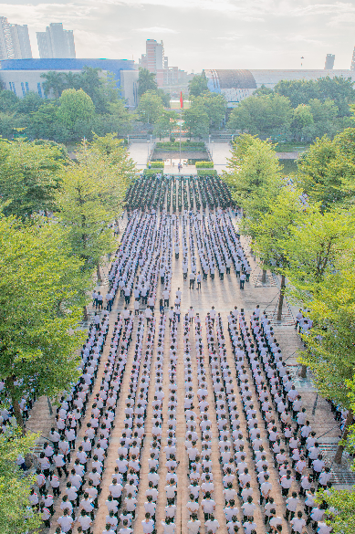 又是一年九月一,又是一年开学季。顺德一中全体师生在鲜红的国旗下参加开学典礼。