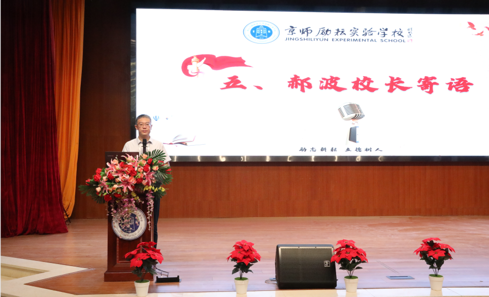 熊文华校长表示了对高一新生的热烈欢迎,对满血归来的高二同学提出期待,同时慰问了已奋战高考一个月的高三师生。他以李大钊先生、习近平总书记、田径运动员苏炳添的例子勉励学生:作为新时代青年,我们就要成为这样有志气、有骨气、有底气的中国人!