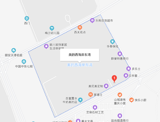 西江新城区位于高明东部组团的中部偏东,南临高明荷城旧城区,北靠南蓬山,东面隔西江与南海区相望。规划范围北起广明高速,南至怡乐路,西起祥福路,东至西江。美的西海岸位于荷富大道以东,怡乐路以北,是新城与老城交汇的核心区域。未来佛山城轨二号线、肇庆经高明至南沙(广佛肇城际轨道)城际线将贯穿而过。
