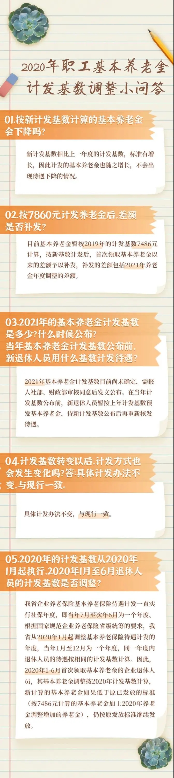 三、首次领取待遇时间在2021年1月至8月的退休人员,在2021年计发基数公布前,暂按2020年计发基数7860元预发基本养老金,待2021年计发基数公布后再重新核发待遇和补发差额。