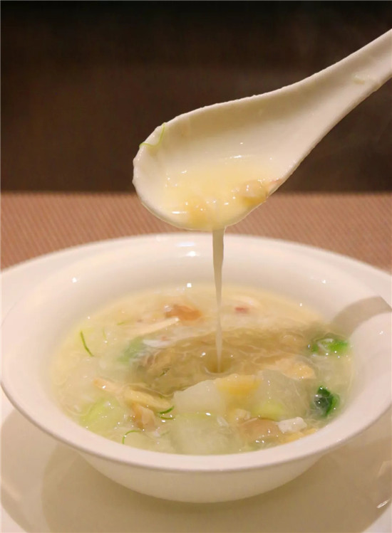 黄但记名菜:菊花榄仁鱼肚鱼蓉羹
