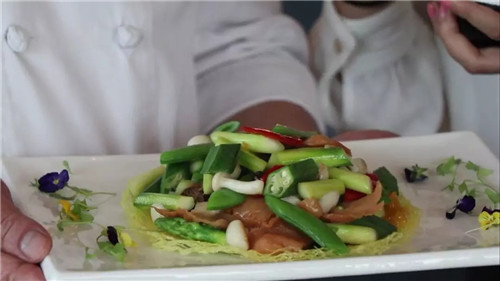 大厨推荐理由:鸿星荟出品的羊肚菌炒绿野禅蔬,用了8种蔬菜搭配清炒,清新爽口、营养丰富,非常适合夏天食用。