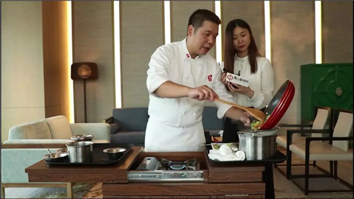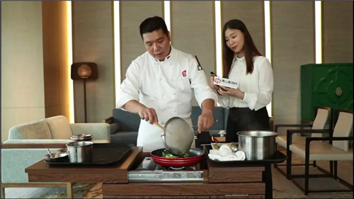 传统的古法盐焗乳鸽,需要提前一天开始制作,制作过程中稍有不慎,便难以保证乳鸽的味道,北洲田园的大厨研制出新的烹制方法,将优质台湾乳鸽完全浸入精心熬制的浓汤中,再捞出控水。这样做出来的乳鸽更新鲜,更入味。