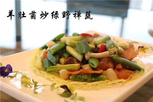 鸿星荟名菜:羊肚菌炒绿野禅蔬