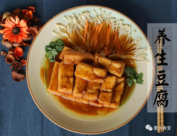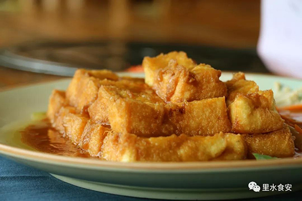农庄的大厨每天自己磨豆、煮汤,为了保证豆腐的口感,大厨坚持盐水点卤,这和石膏点卤大不相同,不仅工作量大,还需百般细心,万样拿捏,做出来的豆腐更白嫩、细滑,最后淋上秘制酱汁,让浓香的豆腐和鲜美的酱汁完美融合,组成“登对”CP。