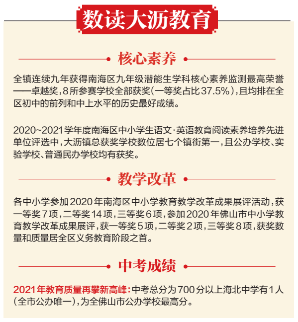 2021年中考强势发力,创造出全市公办初中最高分的佳绩;党建引领,学前教育、民办教育管理迈上新台阶,集团化、家校共建有着“独一份”的专业探索;协同育人成效显著,花满沥城、悦读大沥,让墨韵书香点亮文化名城;打造德育工作的区域特色;新改扩建学校项目积极推进,着力解决居民子女入学需求。