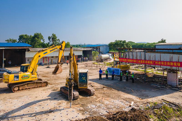 大塘镇莘田晒板厂项目举行拆除仪式。佛山日报记者王澍摄