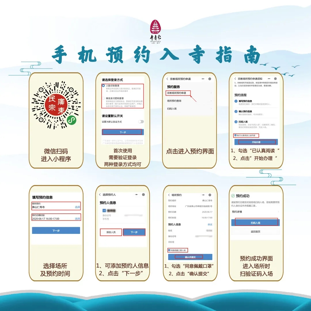 可与子女或其他亲友结伴预约,添加老人的信息;或携带有效身份证件,经现场测温合格,登记相关信息后从长者通道入寺。