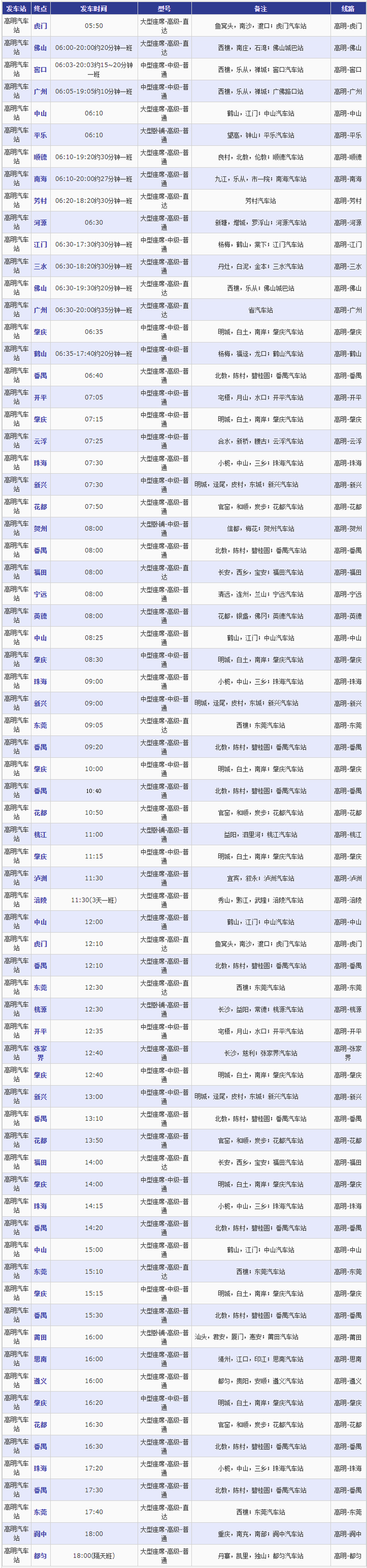 佛山高明客运站发车班次 393班