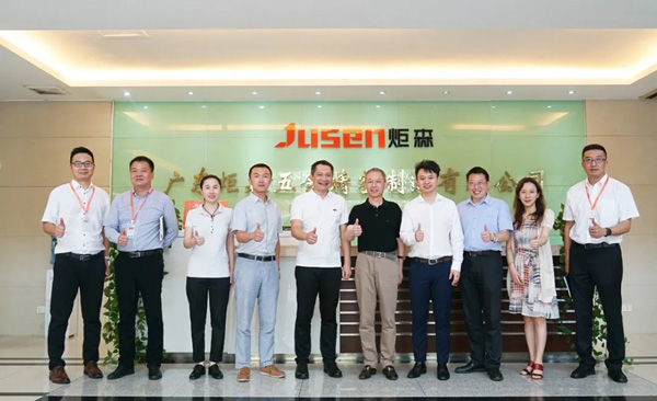9月初,欧派家居集团股份有限公司(以下简称欧派家居集团)执行总裁谭钦兴先生、总裁助理辜健先生、集团家居工艺技术中心总经理蔡丰先生、集团供应链开发部经理杨育玲女士一行莅临广东炬森五金参观指导,炬森董事长戚董带领管理层热情接待。
