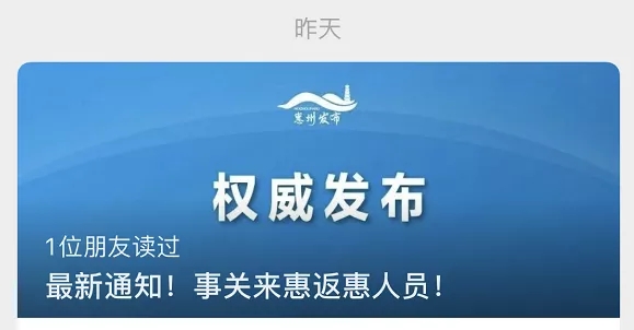惠州市防控新冠肺炎疫情工作领导小组办公室也发布通知,福建省来惠返惠人员需持48小时内新冠核酸阴性证明。