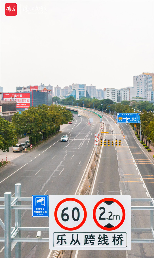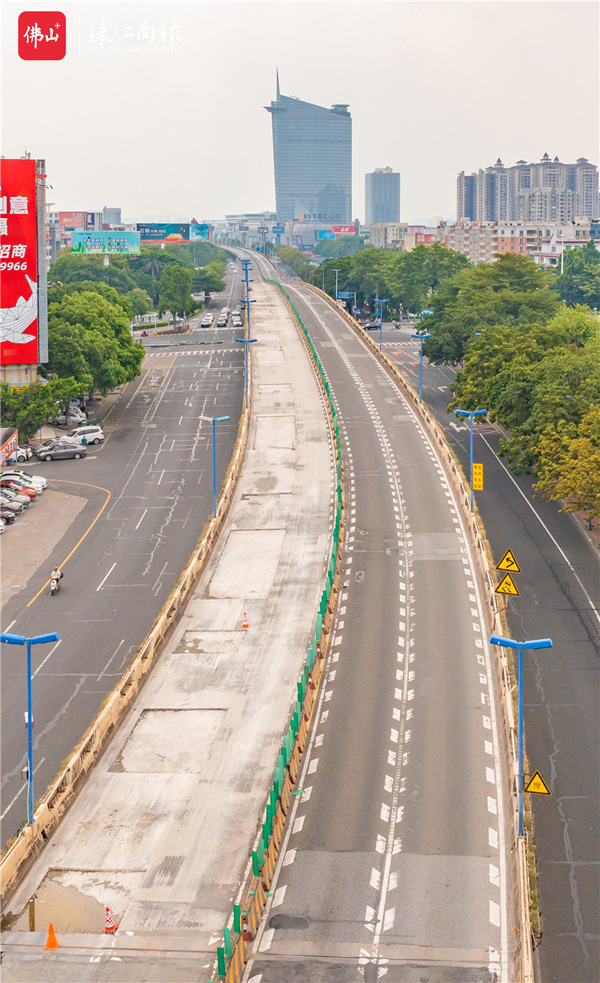 2021年9月14日早上,乐从三乐路跨线桥、乐从大道跨线桥主线正式实行双向封闭施工。/珠江商报记者周焯杰摄