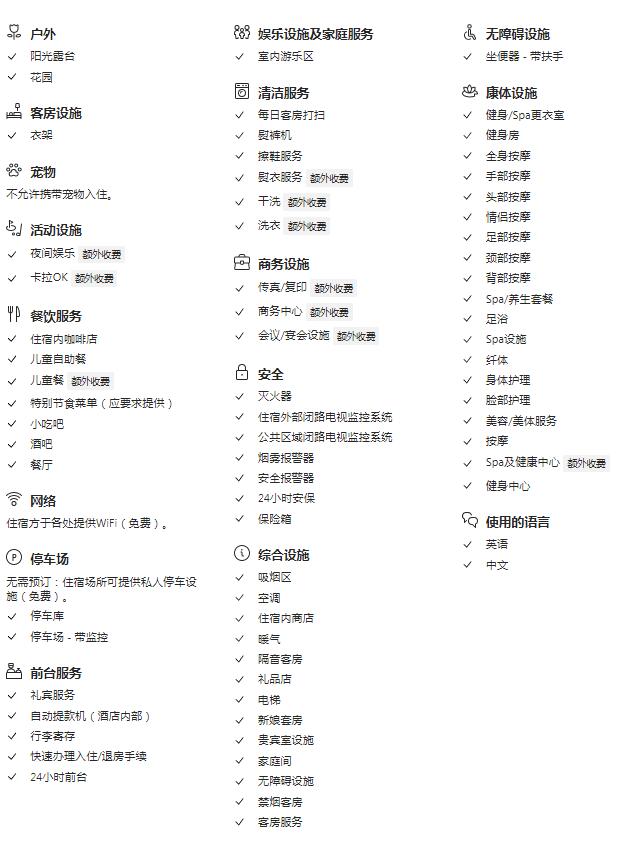 免费无线网络连接,禁烟客房,健身中心,Spa及健康中心,免费停车,酒吧, 早餐不错