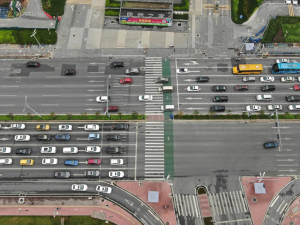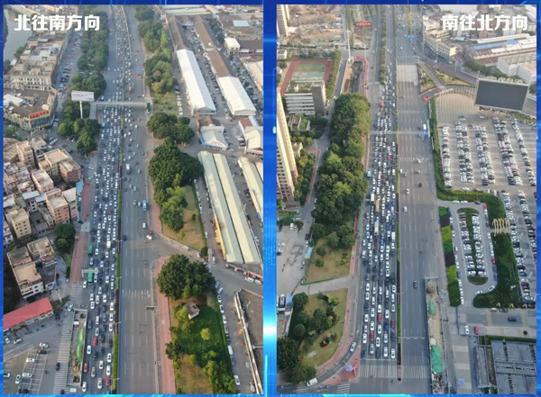目前,该路段信号灯周期红灯等待时长大概为北往南方向平均约25秒,南往北方向平均约30秒,较比以往超1分钟的等待时长缩短不少。现场南北双向车流通行畅顺,通行效率同比提升超20%。
