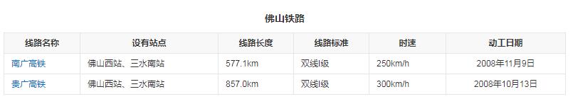 广茂线(由广三线、三茂线合并而成,广三线始建于1902年),设有佛山站、三水站(春运期间停止办理客运服务)。