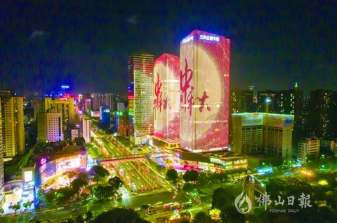 昨晚,禅城万科金融广场亮灯庆中秋。/佛山日报记者符诗贺摄