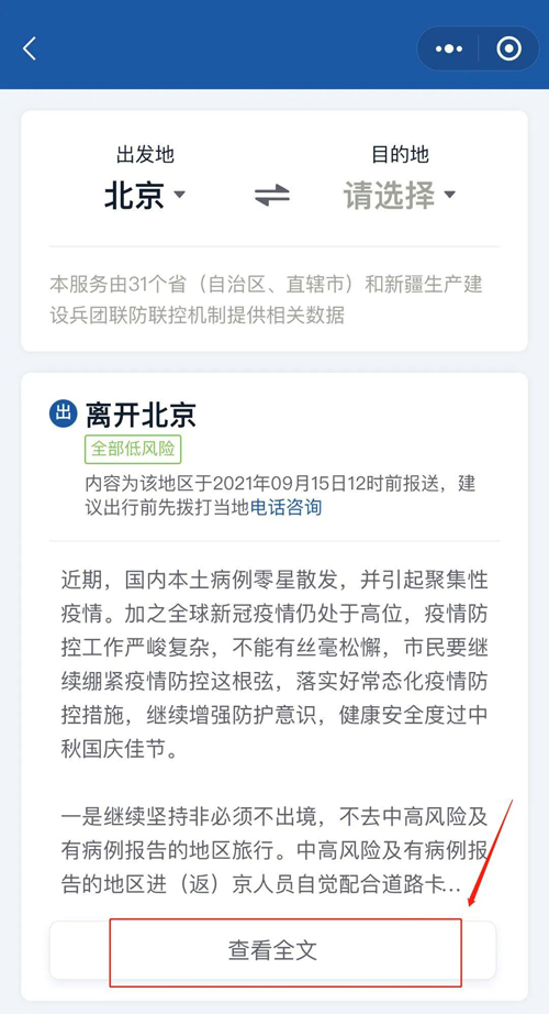 了解出发地和目的地的最新防疫政策措施,只要1分钟!