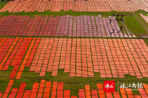 香云纱被誉为世界纺织品中的“软黄金”,其工艺是将桑蚕丝绸缎用天然植物薯莨萃汁浸染,经过浸莨水、晒莨、封莨水等超过30 道工序,再用珠三角特有的河泥覆盖媒染而成的一种特别的丝绸面料,传承500余年而不绝,如今已经被列为国家级“非遗”,同样是伦教乃至顺德一张亮丽的文化名片。