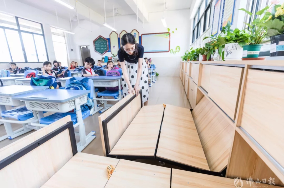 除此之外,通过教学楼扩建工程,细滘小学教室还添置了紫外线消毒灯、防疫用品箱和智慧黑板等设备,增设多功能报告厅、智慧图书室等功能场室。未来六年,细滘小学将扩容到48个教学班。