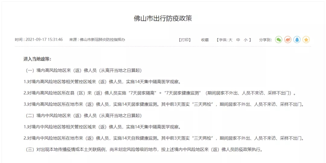 请合理安排出行,不前往疫情发生的地市。确需前往的,请务必提前向所在社区(村)和工作单位报备,并在出行时保持高度警惕,严格做好个人防护;返佛后,应主动向所在社区(村)和工作单位报备,并配合做好各项防控措施。
