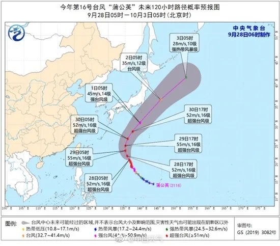 预计,“蒲公英”将以每小时10公里左右的速度向北偏西方向移动,强度变化不大,29日晚上开始逐渐转向北偏东方向移动,并逐渐向日本本州岛东南部海面靠近。未来“蒲公英”对我国海域无影响。