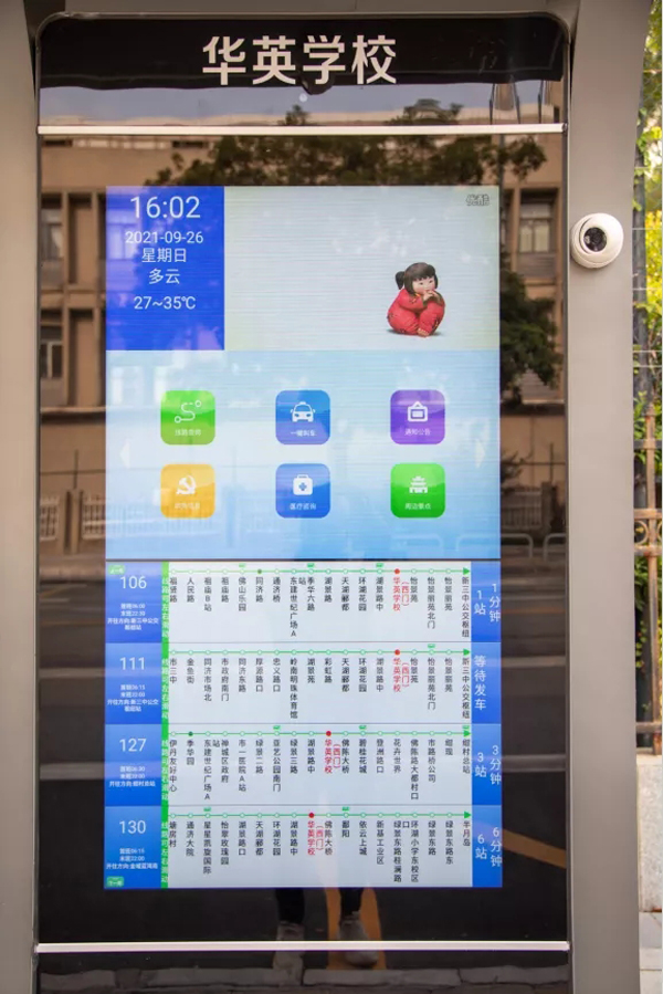 智慧公交站亭还配有LED电子站牌