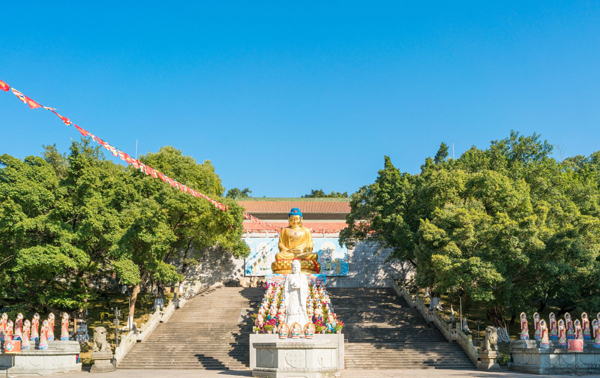 如今的宝林寺则是1996年易地重建的,气势恢宏,古朴庄严。拾级而上,到达山顶可俯瞰顺德城市风貌。半山腰处还设有斋堂,可以前去品尝一番。