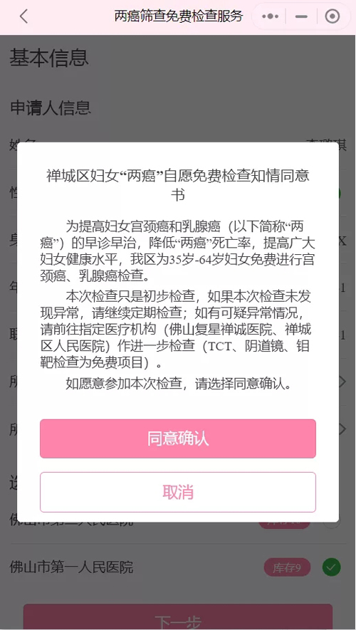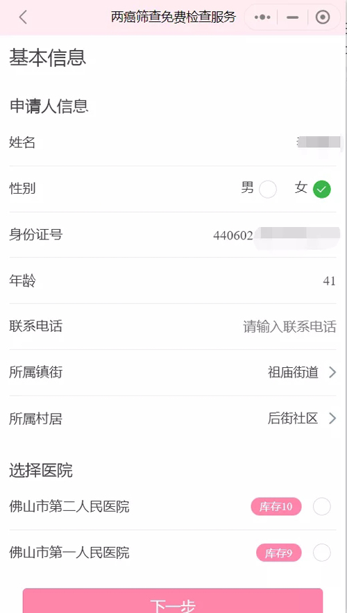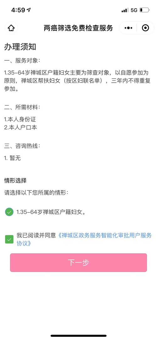 先确认自己是否符合相关申领条件:禅城区户籍的35-64岁妇女(系统后台将通过与户籍信息进行匹配确定申领人身份) ;
