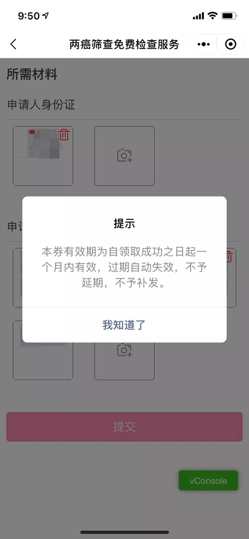 7.确认提交前,系统会弹出温馨提示“本券有效期为自领券之日起一个月内有效,过期自动失效,不予延期,不予补发”,点击我知道了即可申领成功;