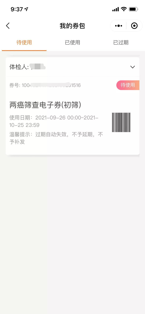“两癌”筛查券有效期为领券后1个月,请及时前往相关医院使用,逾期作废;
