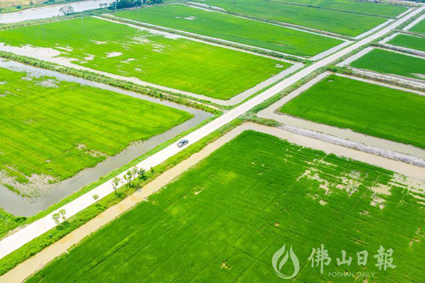 崇步农业园区内,连片的稻田形成汇成一片“绿海”,充满生机。