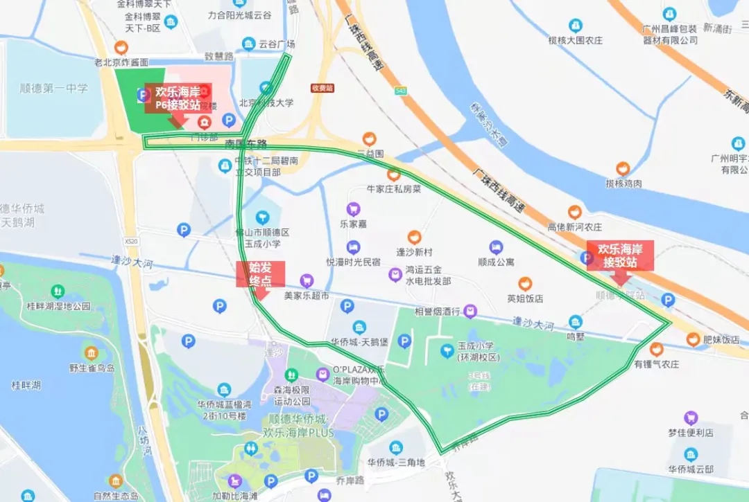 同时,在同江医院或顺德学院站停车的朋友注意,这两个站点配备有通往欢乐海岸PLUS园区的接驳车。