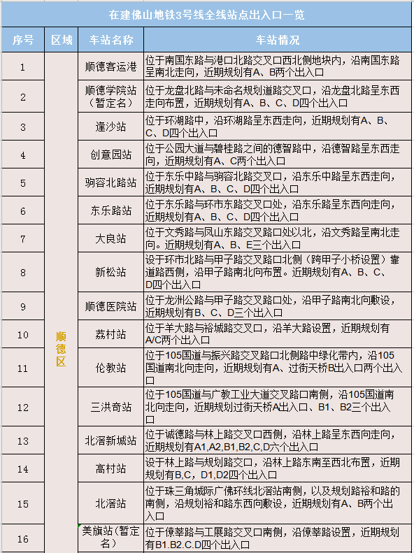 市轨道交通局近日在网络发言人平台上回应市民关切,公布了佛山地铁3号线全线37个站点的位置、出入口设置、车站名称等。
